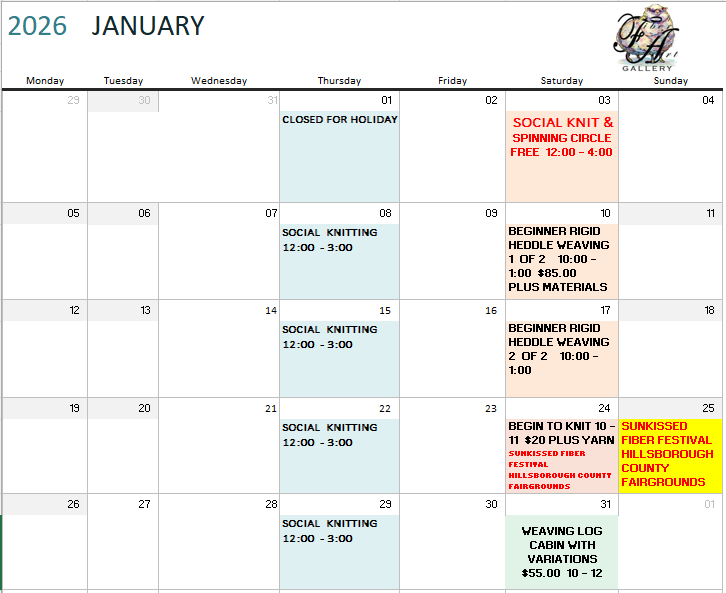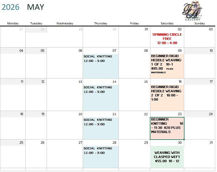 RIGID HEDDLE WEAVING OFFERED EVERY MONTH